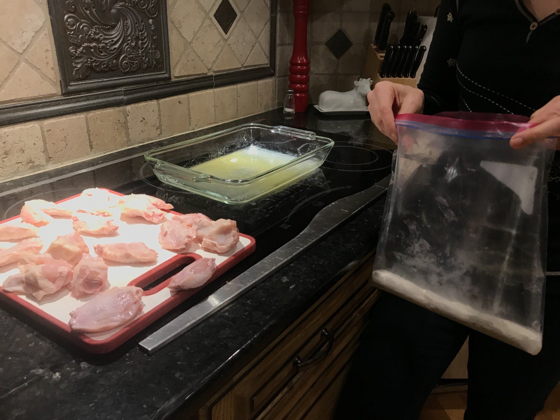 - Cut each chicken wing at joints to make 3 pieces; discard tip. Cut off excess skin; discard.