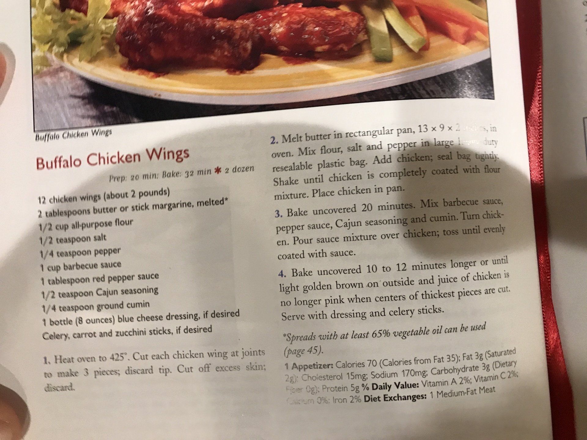These are really easy to make and they are baked in the oven which I guess makes them slightly healthier. This is a modified version of the Buffalo Chicken Wings recipe from my Betty Crocker Cookbook.
