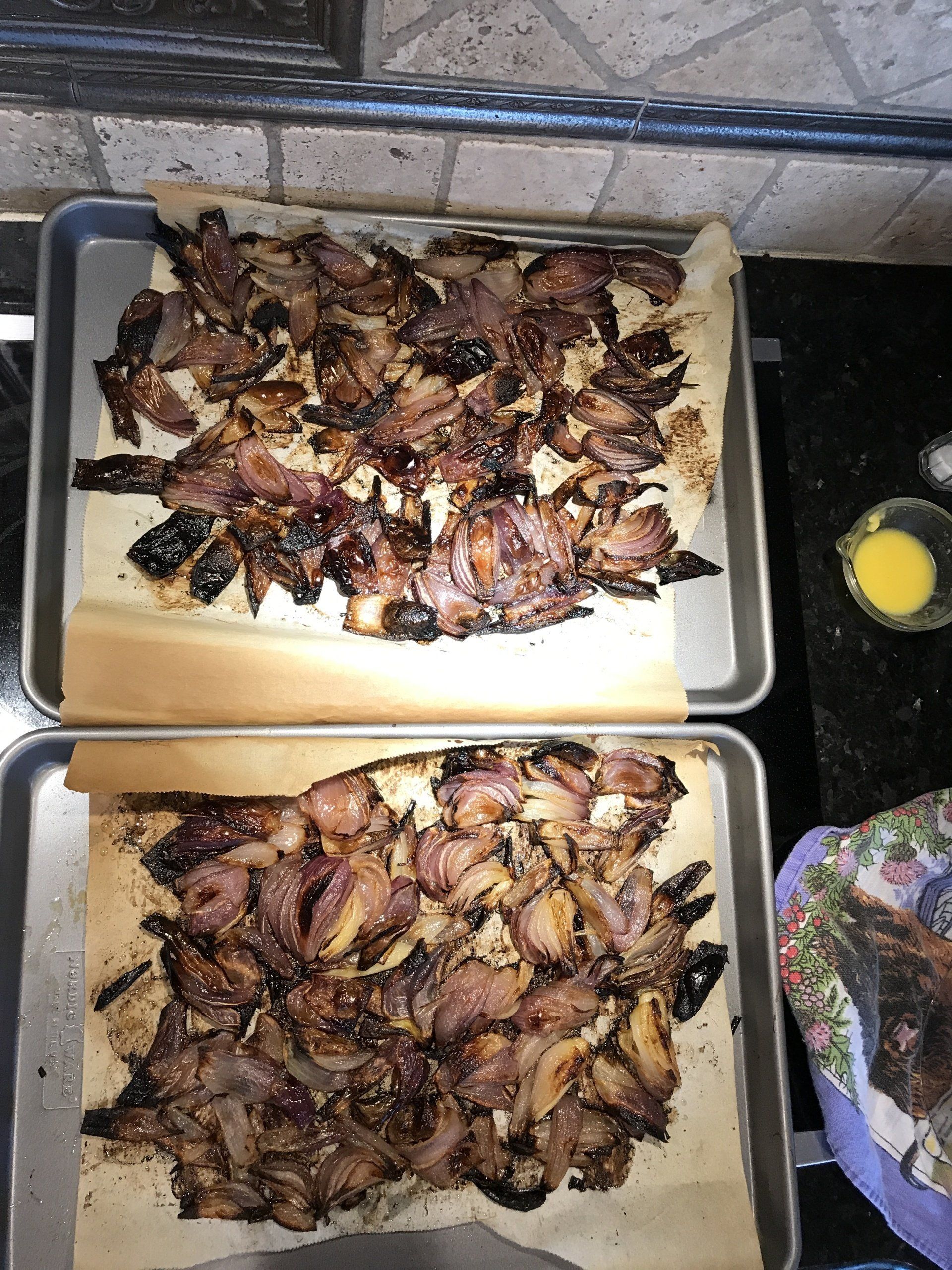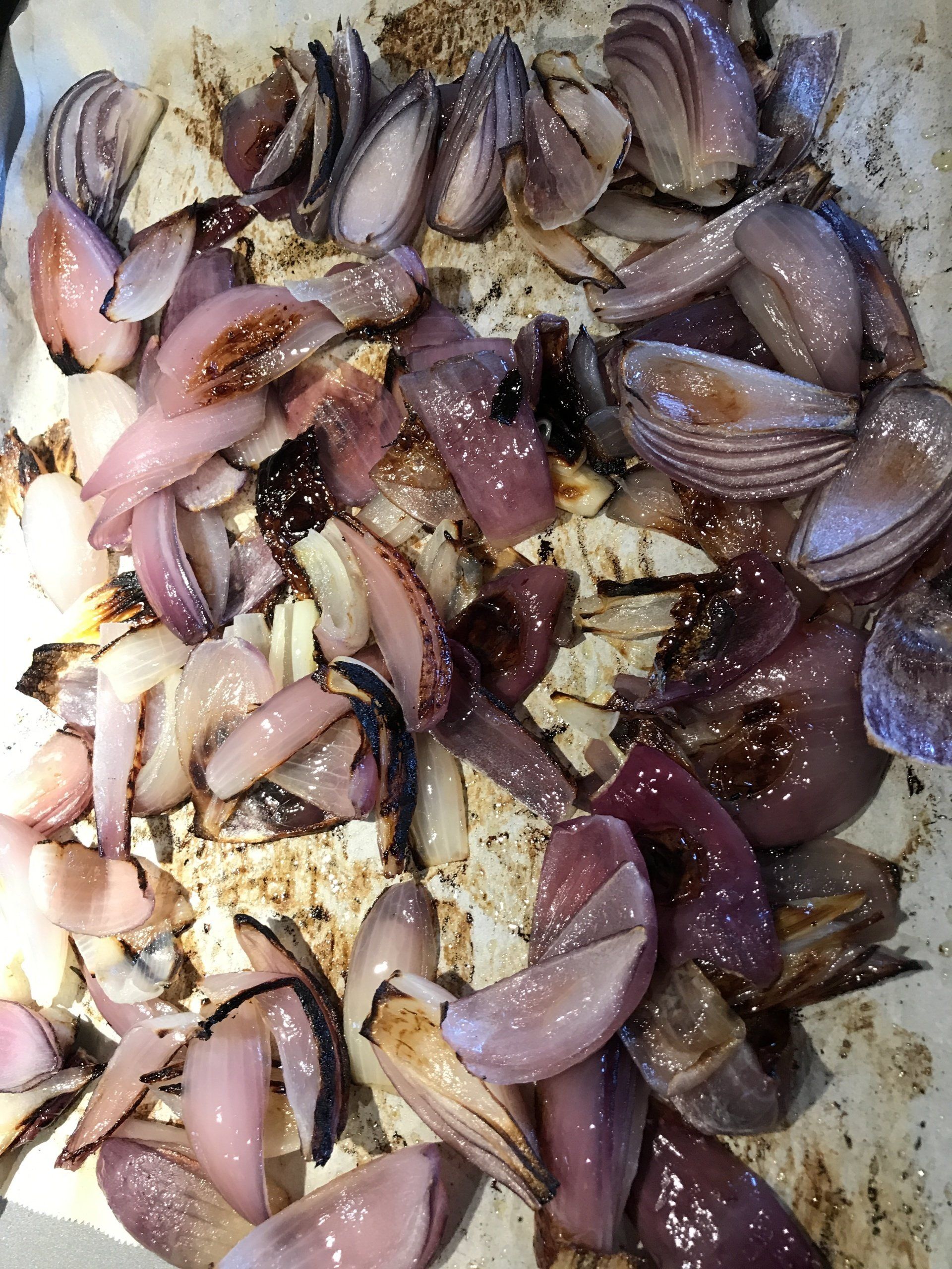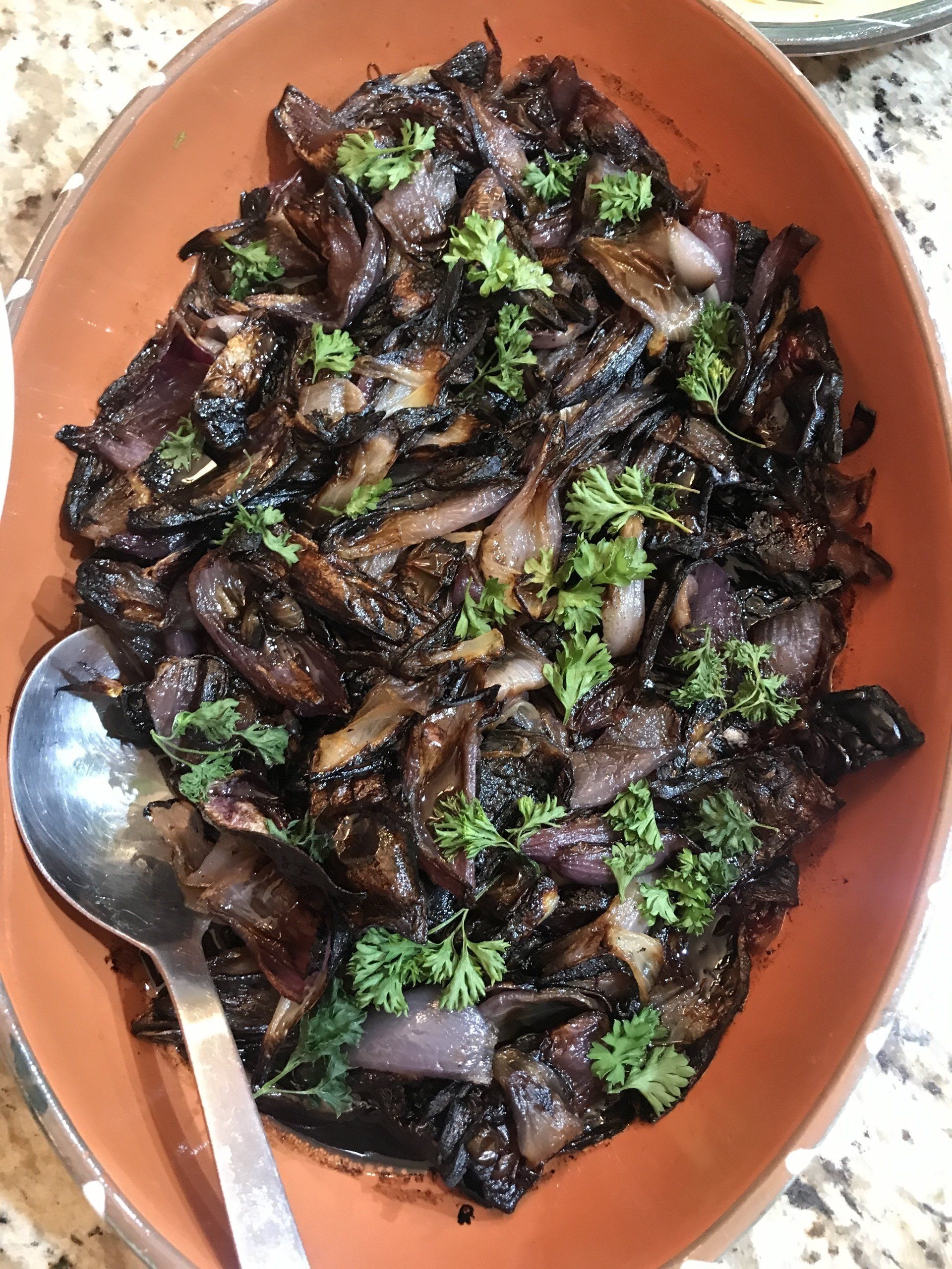 This is originally from Epicurious, but I modified it to use parchment paper because it worked better for roasting the onions. This is a wonderful side dish that pairs beautifully with most meals. It is also great warm or at room temperature.