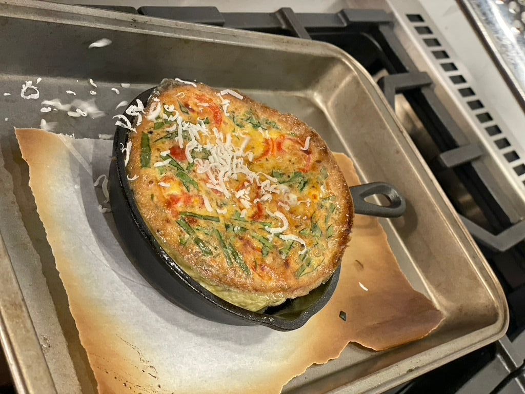 In the original recipe for this Fritatta, it had you starting out on the stovetop and moving into the oven. I ended up cooking all the vegetables under the broiler instead of on top of the stove. I also served with avocado, fresh herbs and salsa.