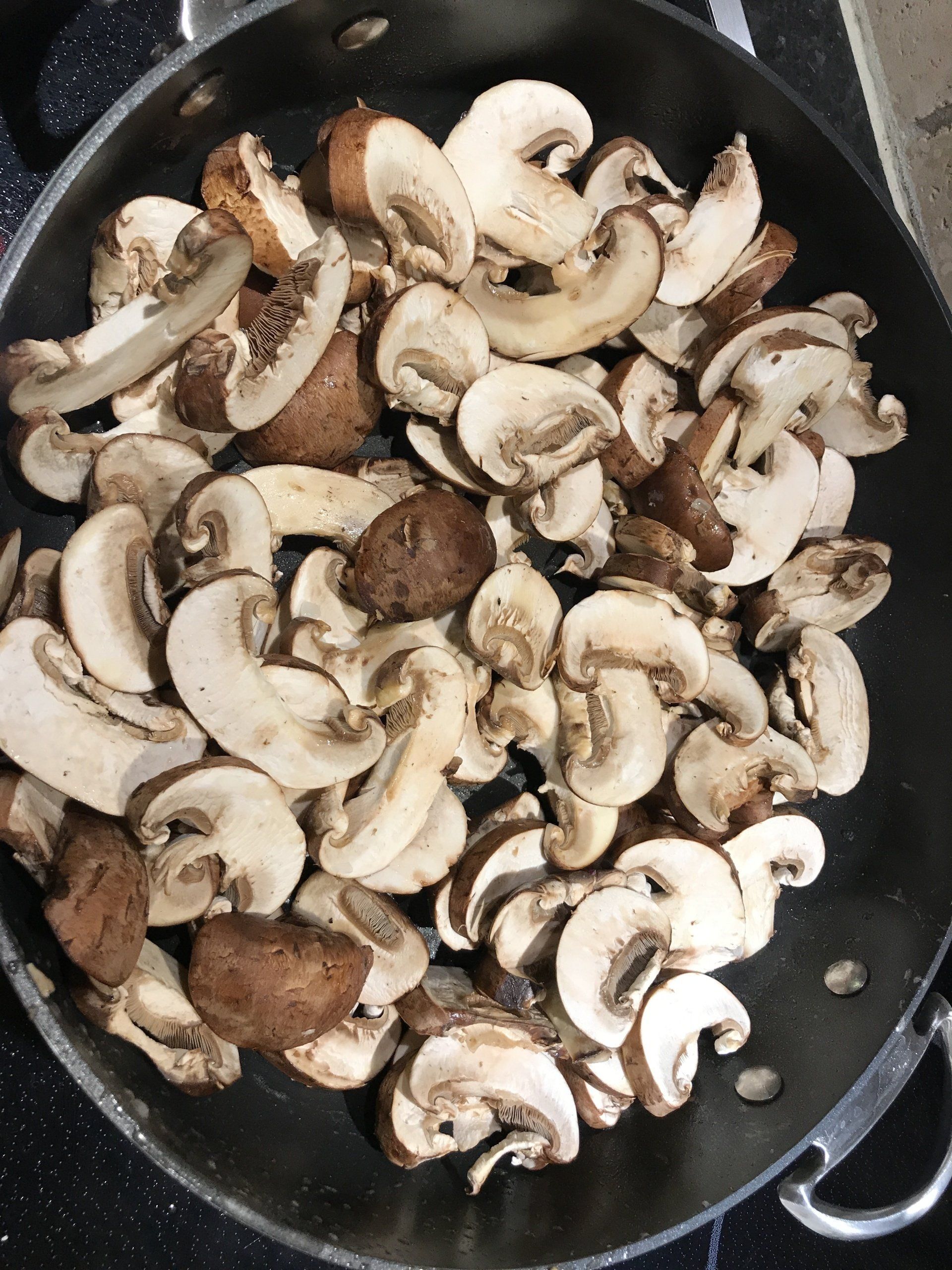 - 1lb ounces organic baby bella mushrooms, sliced 1/4 inch thick