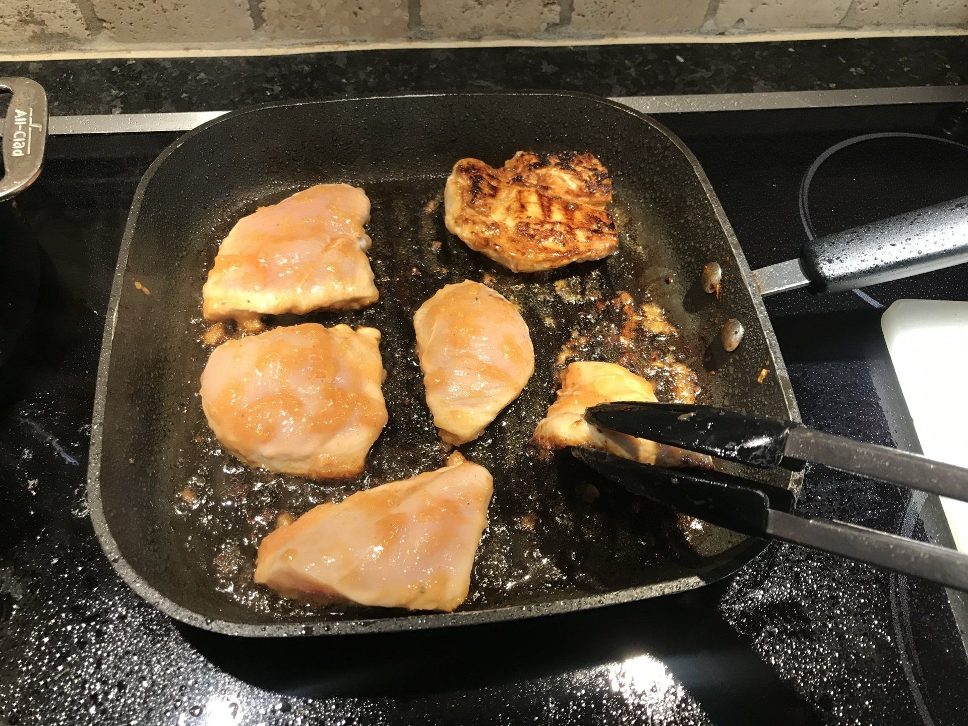 - Prepare a grill to medium-high heat. Brush grill rack with oil. Grill chicken until browned and almost cooked through, 4-5 minutes per side. Brush on all sides with reserved sauce; grill until glazed and cooked through, 1-2 minutes per side.