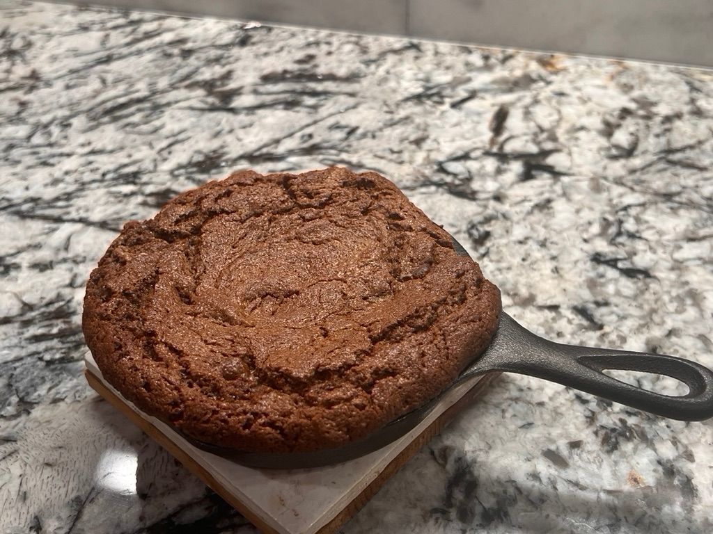 - Preheat oven to 350°F and lightly grease a 5” cast iron skillet with some butter.