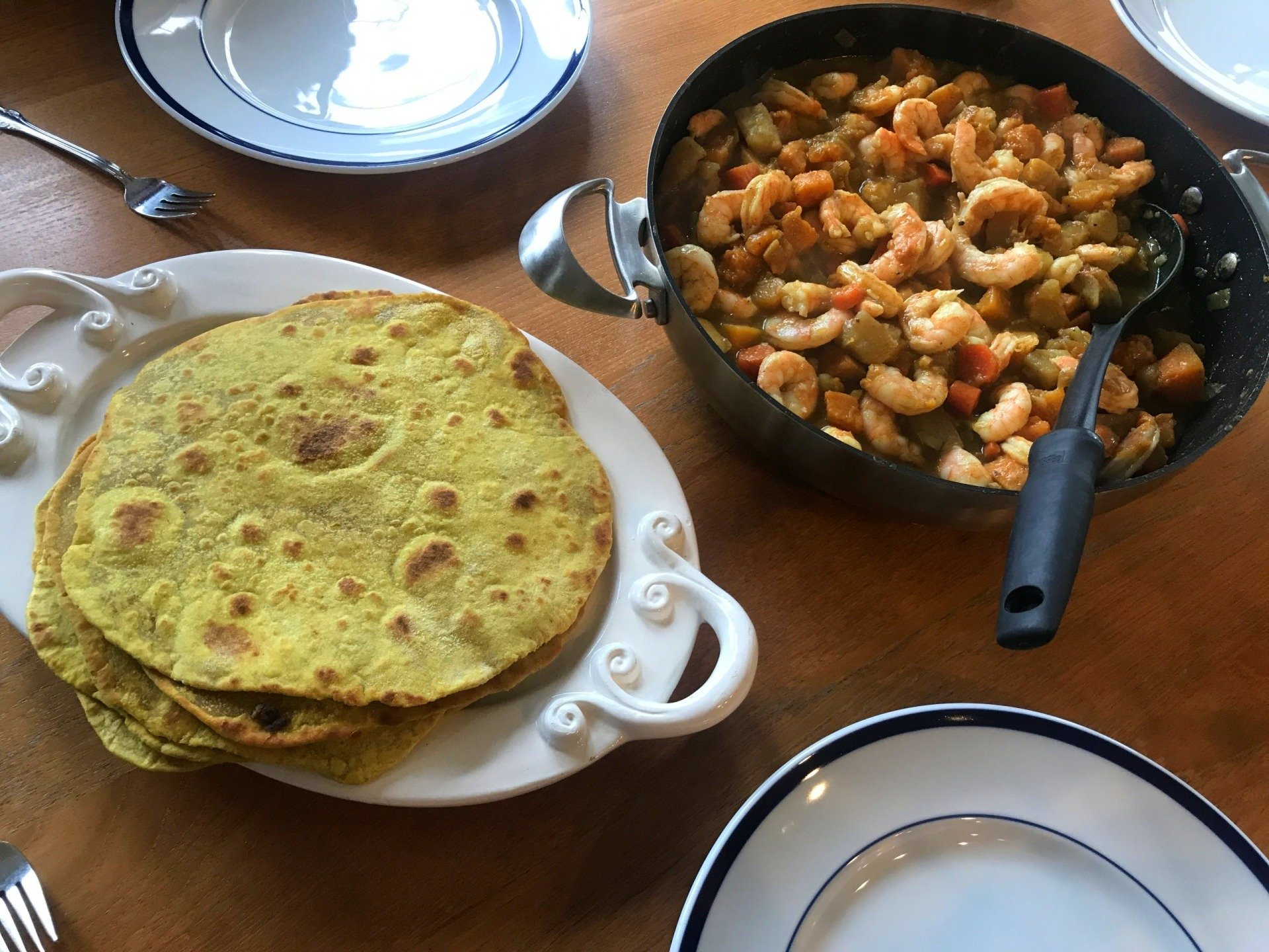 Roti, a supereasy no-rise Indian flatbread, can be found all around the Caribbean, from restaurants to roadside stands. It's most often served burrito style, with the bread stuffed with the flavorful curried stews.